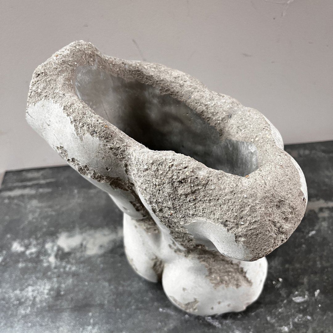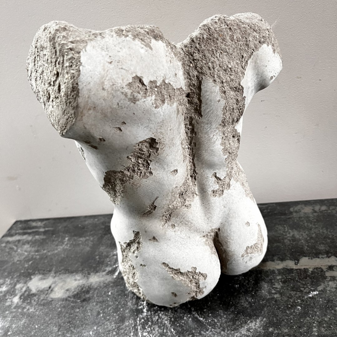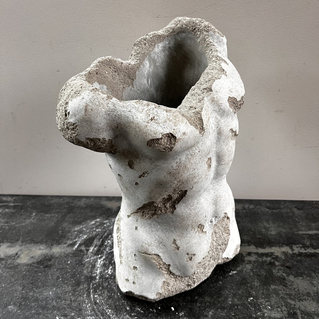 Buste masculin en béton en vase creux dans la posture traditionnelle des modèles des Beaux-Arts.