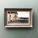 Cadre à miroir droit en bois doré à la feuille. Epoque 1900.