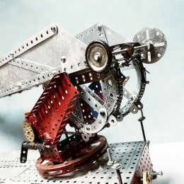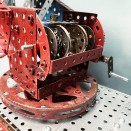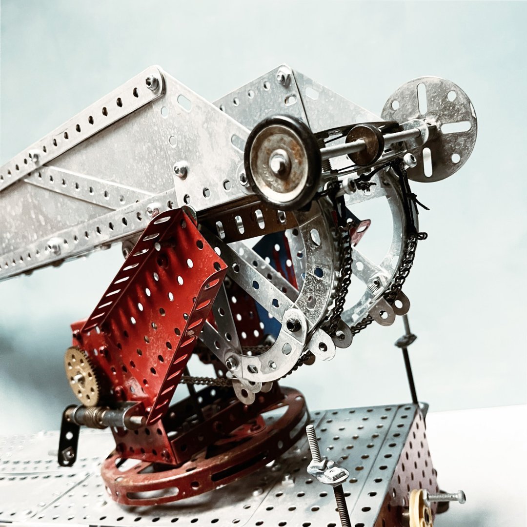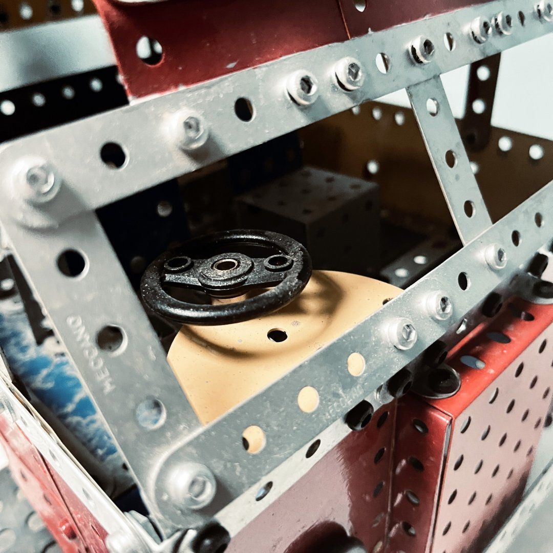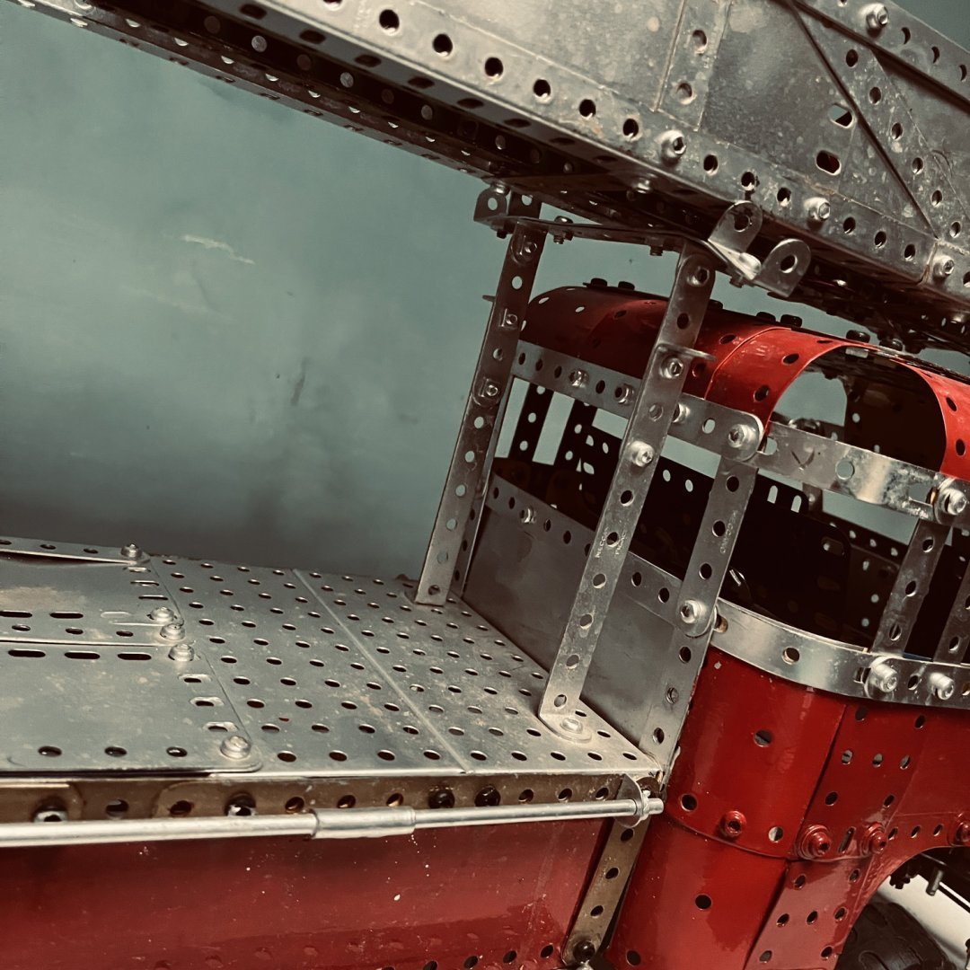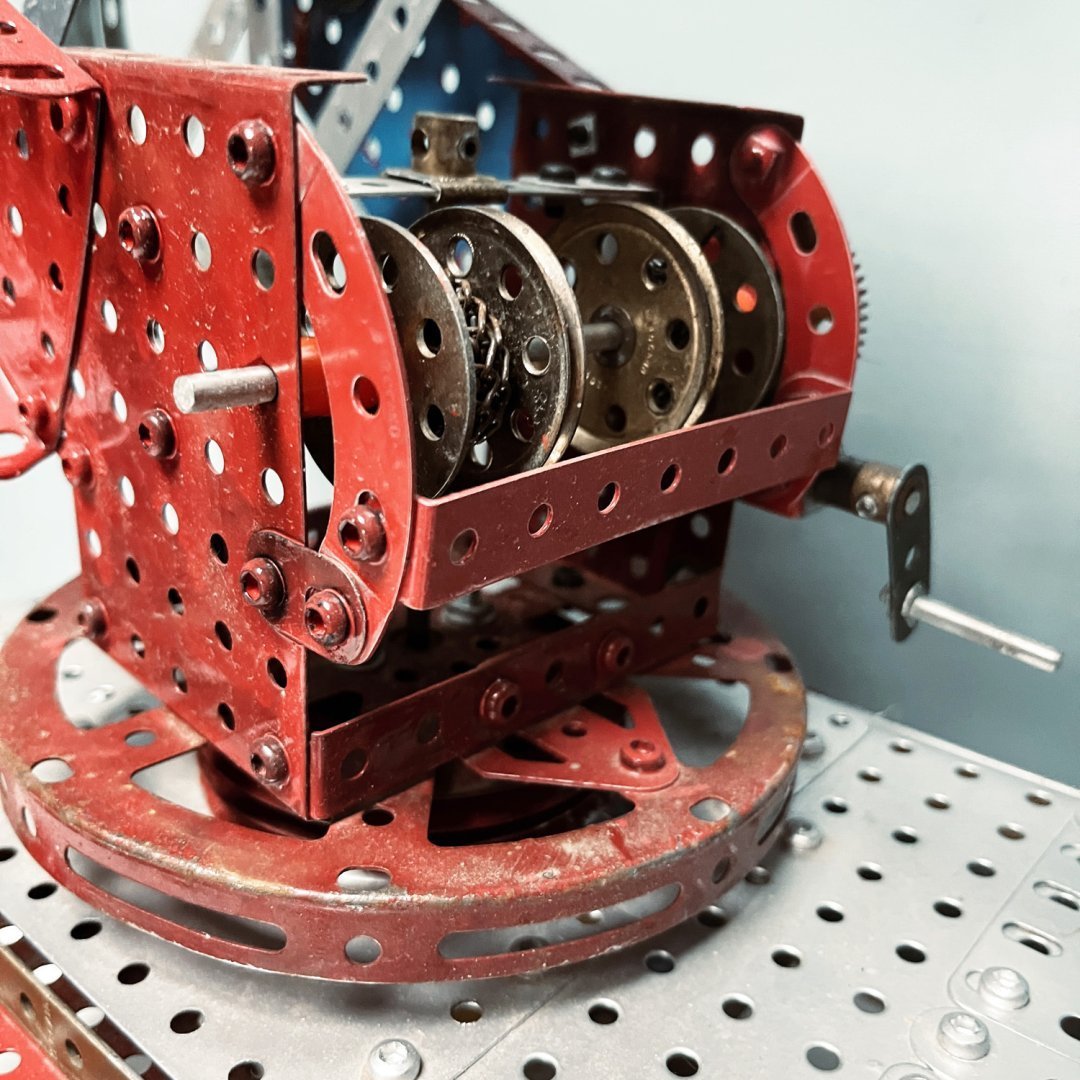 Iconique camion de pompiers MECCANO (1975?), jouet de construction en métal à pièces interchangeables, fondé sur le système des trous équidistants, inventé par F. Hornby et dont la fabrication a cessé en 2024. Une pépite pour spécialistes et collectionneurs.
