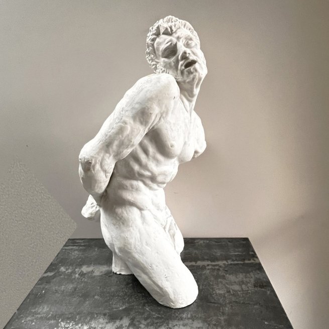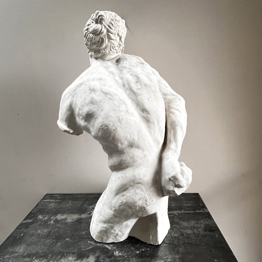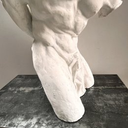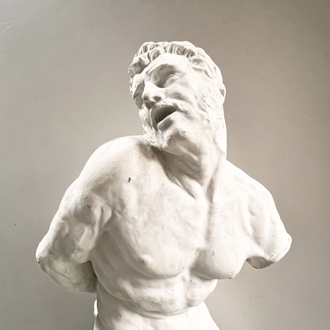 Sculpture en plâtre dans le style des Beaux-Arts. Modèle antique aux muscles noueux représentés dans l'effort musculaire et douloureux, certainement inspiré de la force spectaculaire de l’athlète grec Milon de Crotone.