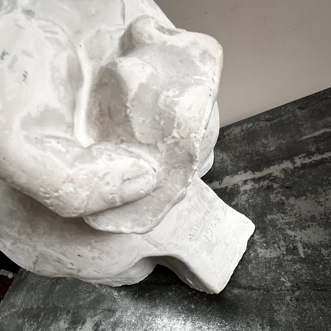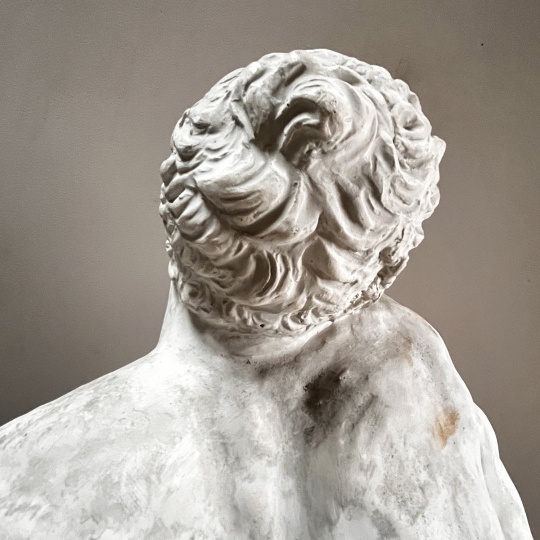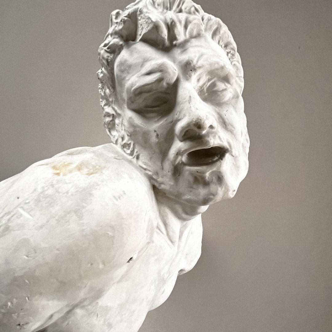 Sculpture en plâtre dans le style des Beaux-Arts. Modèle antique aux muscles noueux représentés dans l'effort musculaire et douloureux, certainement inspiré de la force spectaculaire de l’athlète grec Milon de Crotone.