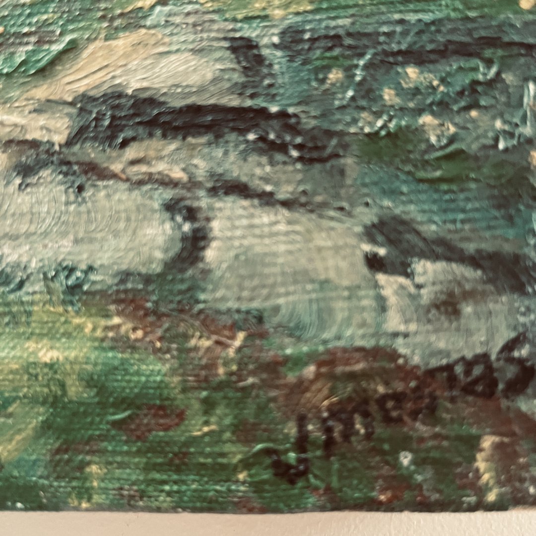 Huile circa 1900 signée J.Mestras: À noter des manques de matière sur les bords de la toile.