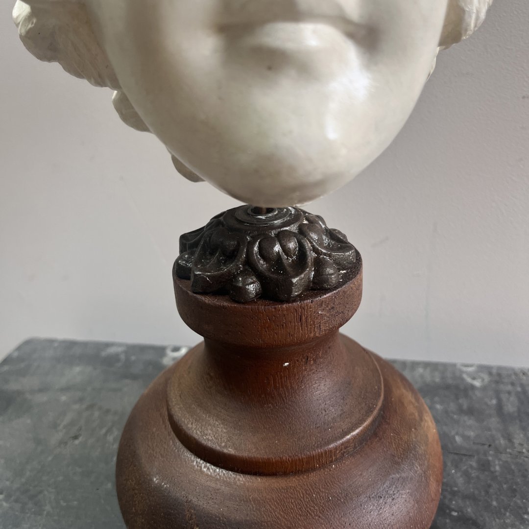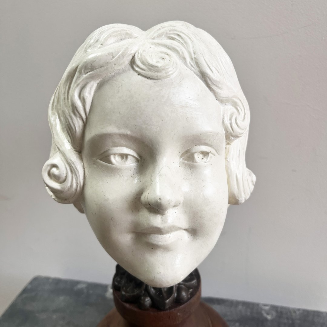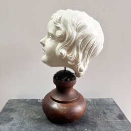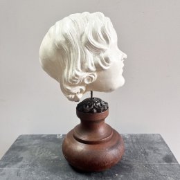 Tête de fillette en plâtre sur socle bois