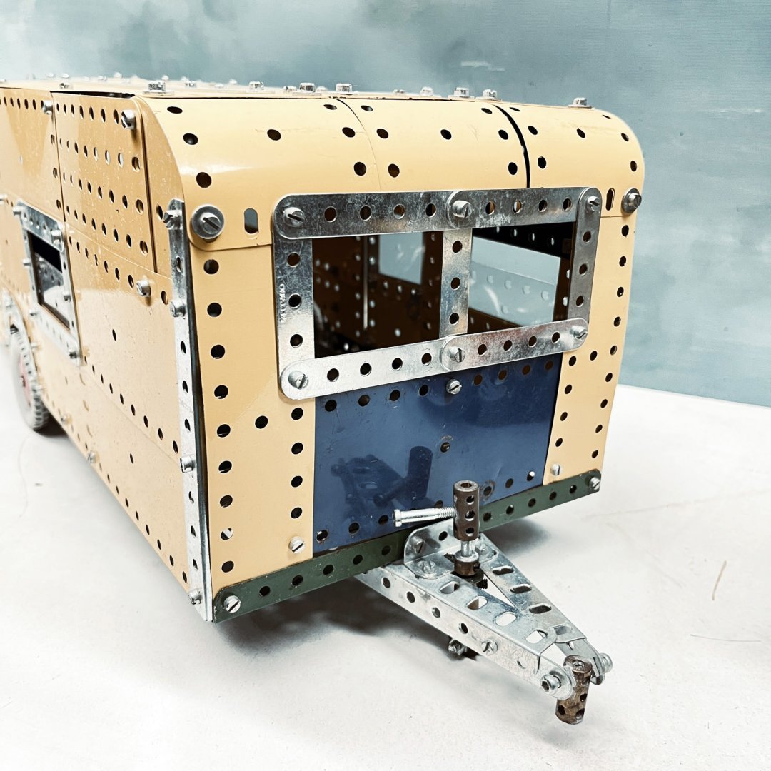 Voiture et caravane MECCANO ( 1962?) jouet de construction en métal à pièces interchangeables, fondé sur le système des trous équidistants. Une pépite pour spécialistes et collectionneurs